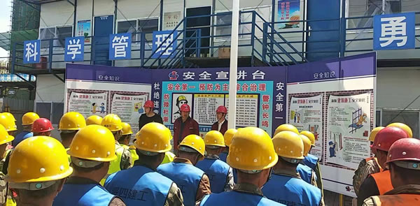 會(huì)上,集團(tuán)安技部于海從人的不安全行為、物的不安全狀態(tài)、現(xiàn)場(chǎng)作業(yè)環(huán)境等方面進(jìn)行了公司級(jí)安全教育。現(xiàn)場(chǎng)管理人員劉政、彭麗群分別進(jìn)行了項(xiàng)目級(jí)安全教育,并要求班組長(zhǎng)每天班前進(jìn)行班組級(jí)安全教育。