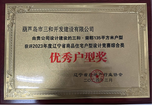本次競賽以“好房子服務(wù)美好生活”為主題,活動(dòng)一經(jīng)發(fā)布,我單位市場開發(fā)副總凌旭作為主要設(shè)計(jì)人,聯(lián)合其它設(shè)計(jì)人員積極申報(bào)戶型設(shè)計(jì)方案。經(jīng)過專家評審,我單位獲得1項(xiàng)綜合類獎(jiǎng)、2項(xiàng)單項(xiàng)類獎(jiǎng)。其中,應(yīng)用于三和榮郡居住小區(qū)二期工程的135平方米戶型,榮獲綜合類“優(yōu)秀戶型獎(jiǎng)”;應(yīng)用于三和宜興園小區(qū)工程的85平方米戶型,榮獲單項(xiàng)類“最佳青年戶型獎(jiǎng)”;應(yīng)用于三和恬園小區(qū)二期工程的184平方米戶型,榮獲單項(xiàng)類“最佳適老戶型獎(jiǎng)”。