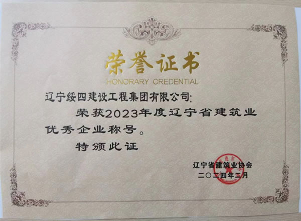 2024年5月,遼寧綏四建設(shè)工程集團有限公司榮獲遼寧省建筑業(yè)協(xié)會頒發(fā)的“2023年度遼寧省建筑業(yè)AAA級信用企業(yè)”和“2023年度遼寧省建筑業(yè)優(yōu)秀企業(yè)”榮譽證書。