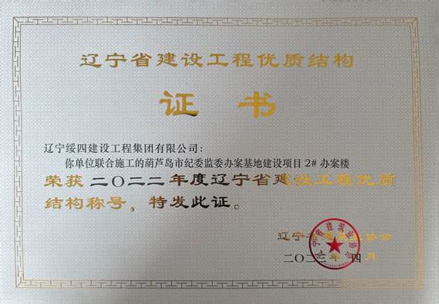 葫蘆島市紀(jì)委監(jiān)委辦案基地建設(shè)項目 2# 辦案樓榮獲2022年度遼寧省建設(shè)工程優(yōu)質(zhì)結(jié)構(gòu)稱號