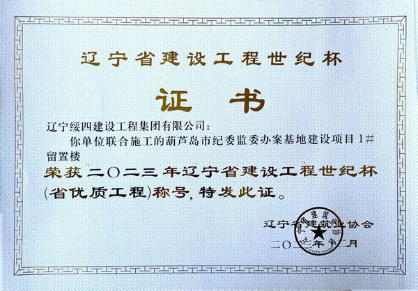 葫蘆島市紀委監(jiān)委辦案基地建設項目1#留置樓 榮獲2023年遼寧省建設工程世紀杯(省優(yōu)質工程)稱號