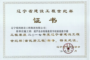 “葫蘆島市特殊教育學(xué)校新建教學(xué)樓工程”榮獲2017年度遼寧省建設(shè)工程世紀杯稱號