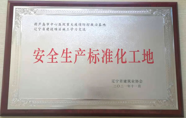 2021年11月,我集團(tuán)承建的葫蘆島市中心醫(yī)院重大疫情防控救治基地,被遼寧省建筑業(yè)協(xié)會(huì)評(píng)為“安全生產(chǎn)標(biāo)準(zhǔn)化工地”。