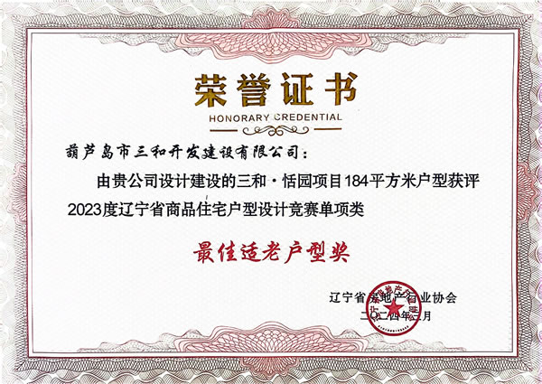 本次競賽以“好房子服務(wù)美好生活”為主題,活動(dòng)一經(jīng)發(fā)布,我單位市場開發(fā)副總凌旭作為主要設(shè)計(jì)人,聯(lián)合其它設(shè)計(jì)人員積極申報(bào)戶型設(shè)計(jì)方案。經(jīng)過專家評審,我單位獲得1項(xiàng)綜合類獎(jiǎng)、2項(xiàng)單項(xiàng)類獎(jiǎng)。其中,應(yīng)用于三和榮郡居住小區(qū)二期工程的135平方米戶型,榮獲綜合類“優(yōu)秀戶型獎(jiǎng)”;應(yīng)用于三和宜興園小區(qū)工程的85平方米戶型,榮獲單項(xiàng)類“最佳青年戶型獎(jiǎng)”;應(yīng)用于三和恬園小區(qū)二期工程的184平方米戶型,榮獲單項(xiàng)類“最佳適老戶型獎(jiǎng)”。