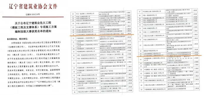 喜訊!遼寧綏四建工集團(tuán)兩個(gè)項(xiàng)目榮獲遼寧建筑業(yè)危大工程(模板工程及支撐體系)專項(xiàng)施工方案編制技能大賽三等獎(jiǎng)