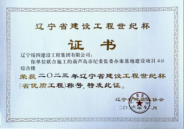 葫蘆島市紀委監(jiān)委辦案基地建設項目4#綜合樓 榮獲2023年遼寧省建設工程世紀杯(省優(yōu)質(zhì)工程)稱號